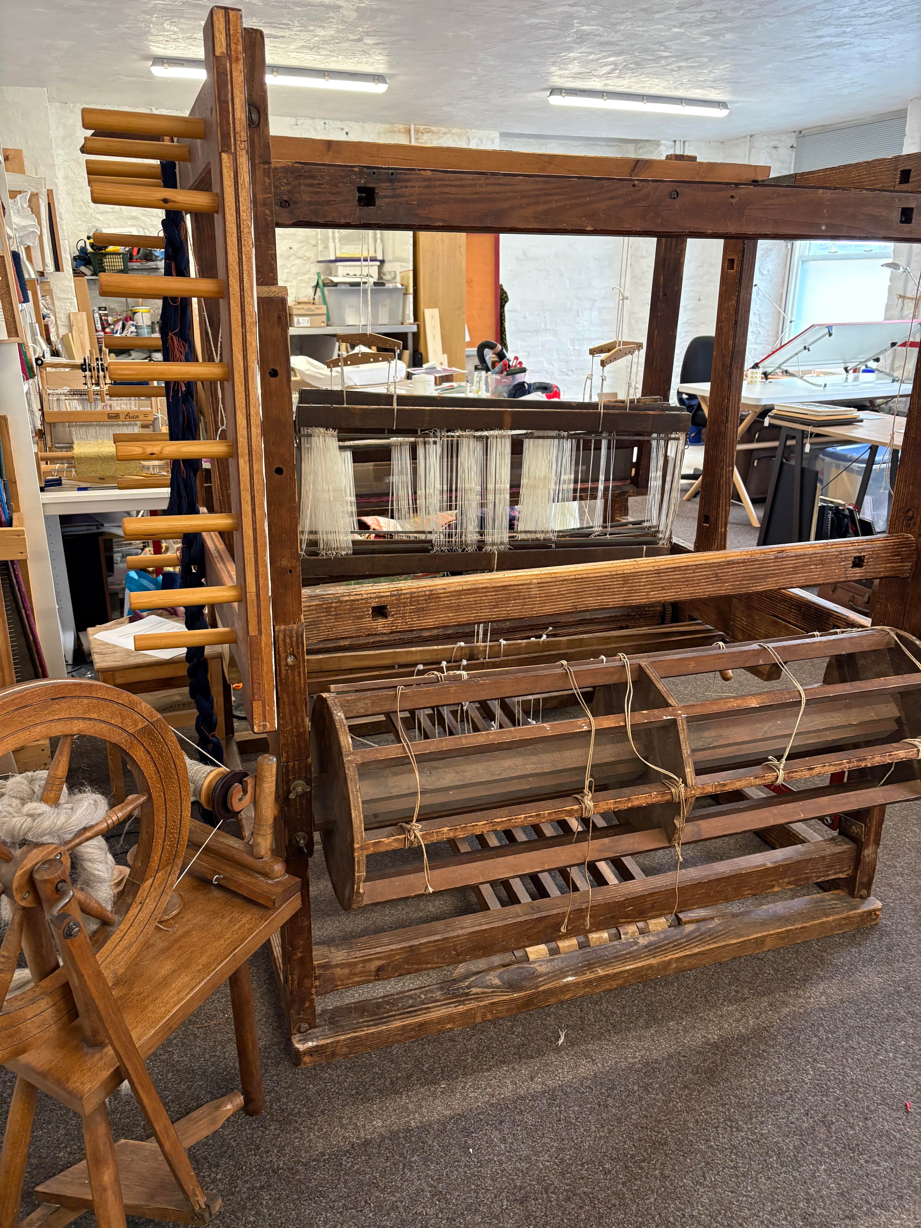 Kate Greatorex is a weaver based in the Peak District, specialising in using locally sourced and sustainable fibres, often hand-spinning these fibres. If dyed, the fibres are dyed with locally foraged plants. Kate’s loom dates back to 1860.